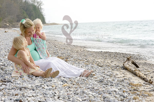 What an amazing night for a photo session with this beautiful family! The storms held off, so we decided to go ahead with the session. It was a bit windy and chilly when we first arrived at Christmas Cove Beach in Northport, Michigan. The girls got bundled and we headed on our adventure to the beach. We were excited to see the sun come out and warm us up a bit so we could capture some beautiful moments. I look forward to being with this family to welcome this very loved little boy into the world.