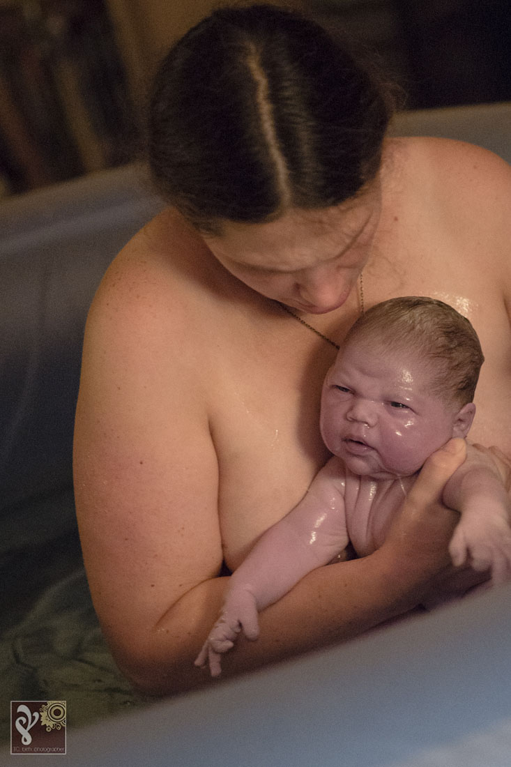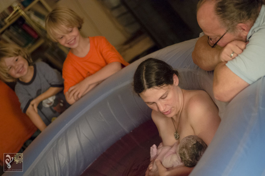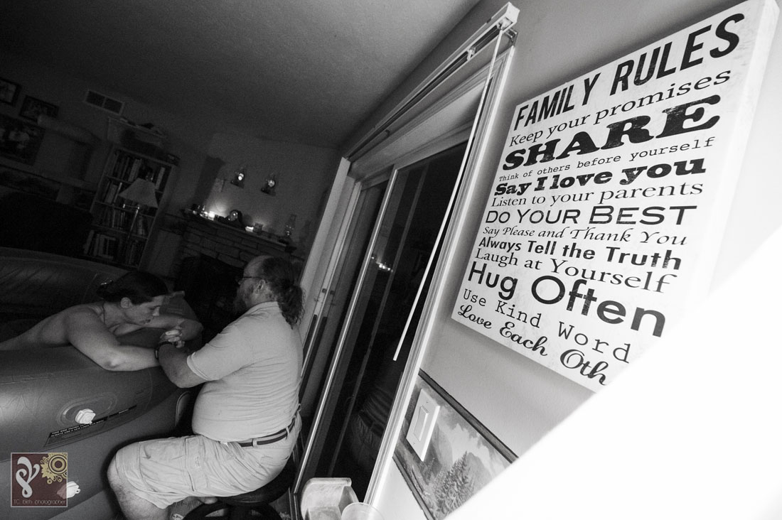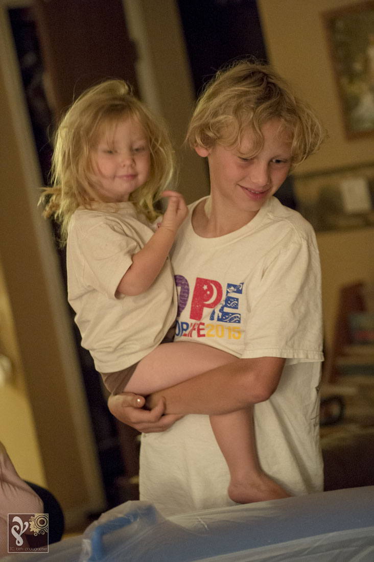 I love watching the families I photograph grow. This was a second birth that I was asked to photograph for this family. Baby Phoenix was patient and waited for the entire birth team to arrive. I loved walking into the quite room of a laboring mama. The tub was filled up and ready when I arrived. Mama was labor beside the birth pool with her husband. The kids were all in bed. The midwife team of three stood nearby making sure everything was ready for this little one once he comes earth side. She got into the birth pool shortly. This mama, who is also training to be a midwife, decided she wanted to have an unassisted birth with the midwives nearby. She was a rock star and labored each contraction beautifully. We could all see the rushes getting more intense… I knew the baby was coming soon. Minutes later she delivered her baby Phoenix into her own arms while in the birth tub. It was amazing. Shortly after the baby was born, the kids started walking into the room to see their newest sibling. The oldest and previous youngest were the first to arrive. So much excitement ran through the house. While the midwives got mama and baby set up to be more comfortable in the bedroom with dad, Big sister made a hearty post-birth meal and the other kids played/read as quietly as they could with all the excitement. The biggest surprise of the night was that this was this mama’s biggest baby yet! It filled my heart to witness the birth of this baby boy and to see the love run through this family. Thank you for asking me to be a part of this very special day. Congratulations Burgess Family!!
