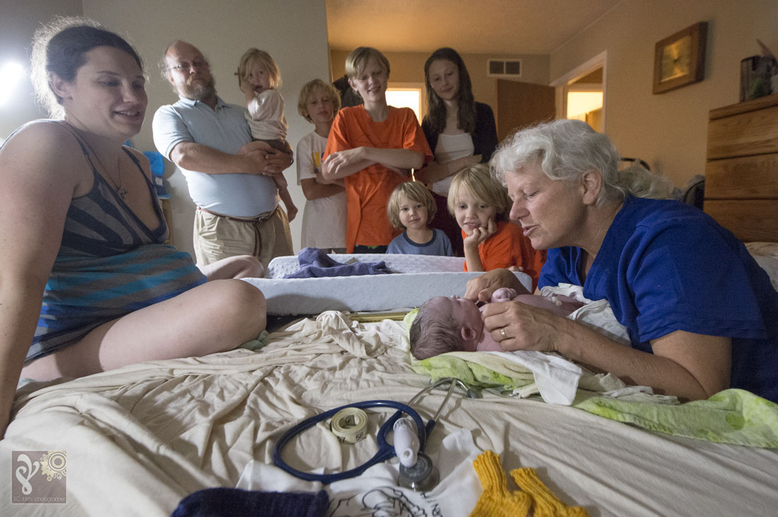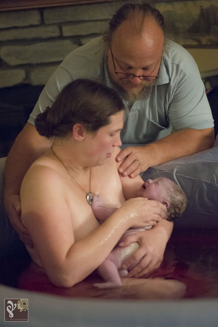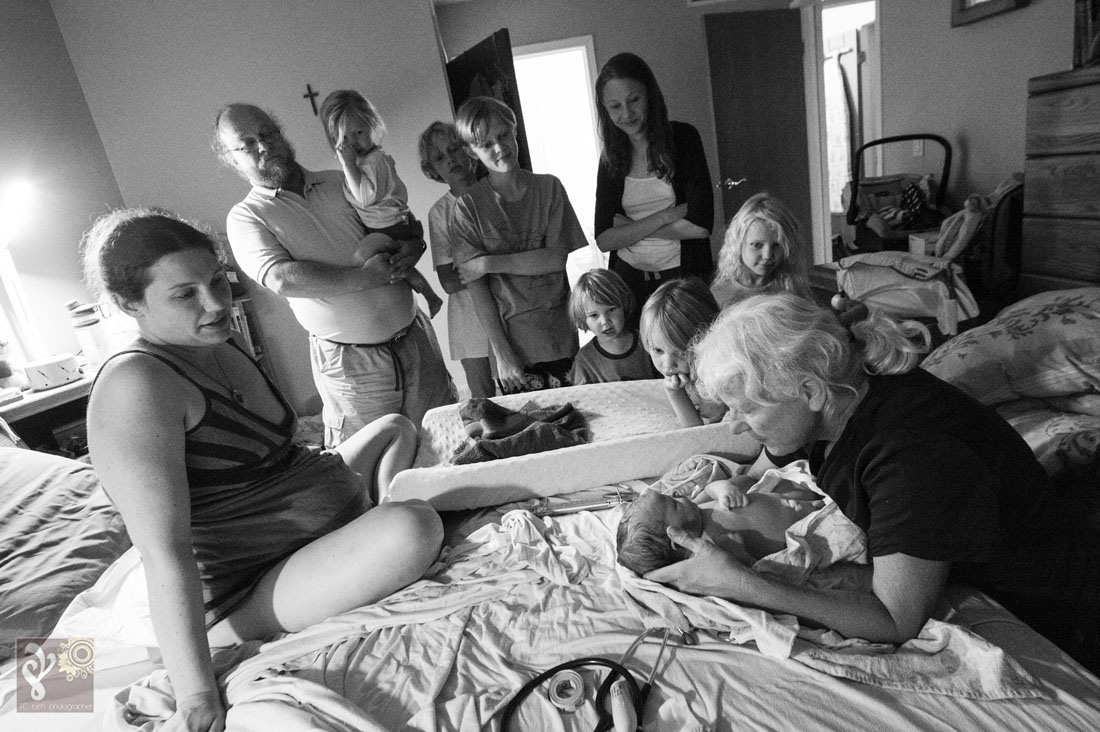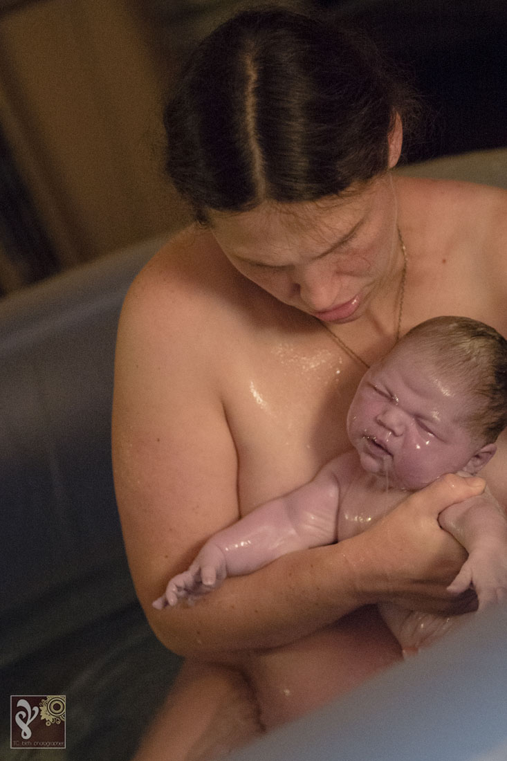 I love watching the families I photograph grow. This was a second birth that I was asked to photograph for this family. Baby Phoenix was patient and waited for the entire birth team to arrive. I loved walking into the quite room of a laboring mama. The tub was filled up and ready when I arrived. Mama was labor beside the birth pool with her husband. The kids were all in bed. The midwife team of three stood nearby making sure everything was ready for this little one once he comes earth side. She got into the birth pool shortly. This mama, who is also training to be a midwife, decided she wanted to have an unassisted birth with the midwives nearby. She was a rock star and labored each contraction beautifully. We could all see the rushes getting more intense… I knew the baby was coming soon. Minutes later she delivered her baby Phoenix into her own arms while in the birth tub. It was amazing. Shortly after the baby was born, the kids started walking into the room to see their newest sibling. The oldest and previous youngest were the first to arrive. So much excitement ran through the house. While the midwives got mama and baby set up to be more comfortable in the bedroom with dad, Big sister made a hearty post-birth meal and the other kids played/read as quietly as they could with all the excitement. The biggest surprise of the night was that this was this mama’s biggest baby yet! It filled my heart to witness the birth of this baby boy and to see the love run through this family. Thank you for asking me to be a part of this very special day. Congratulations Burgess Family!!