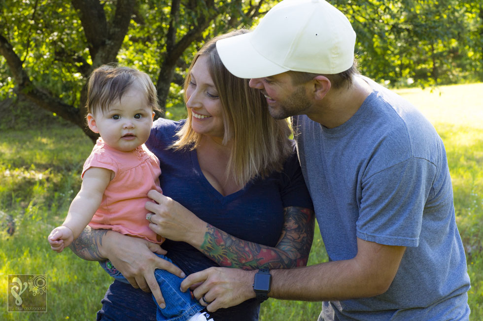I can’t believe it has been 6 months since little Adi was born! She has grown SO MUCH since the peanut she was at our newborn session. She sits up like a big girl and has such bright eyes and big expressions. I had a blast hanging out with her and her parents, Rob & Tania, on Saturday for our session. We gave her some sensory time sitting in the garden a little and not only did she look adorable among all the green textures of the plants, she loved touching and feeling all the different plants and textures. We went adventuring into the woods to the tree where Rob proposed to Tania. We even were able to wrangle the pup for a photo. It was a lovely morning. Thanks so much for asking me to capture this special time in photos!